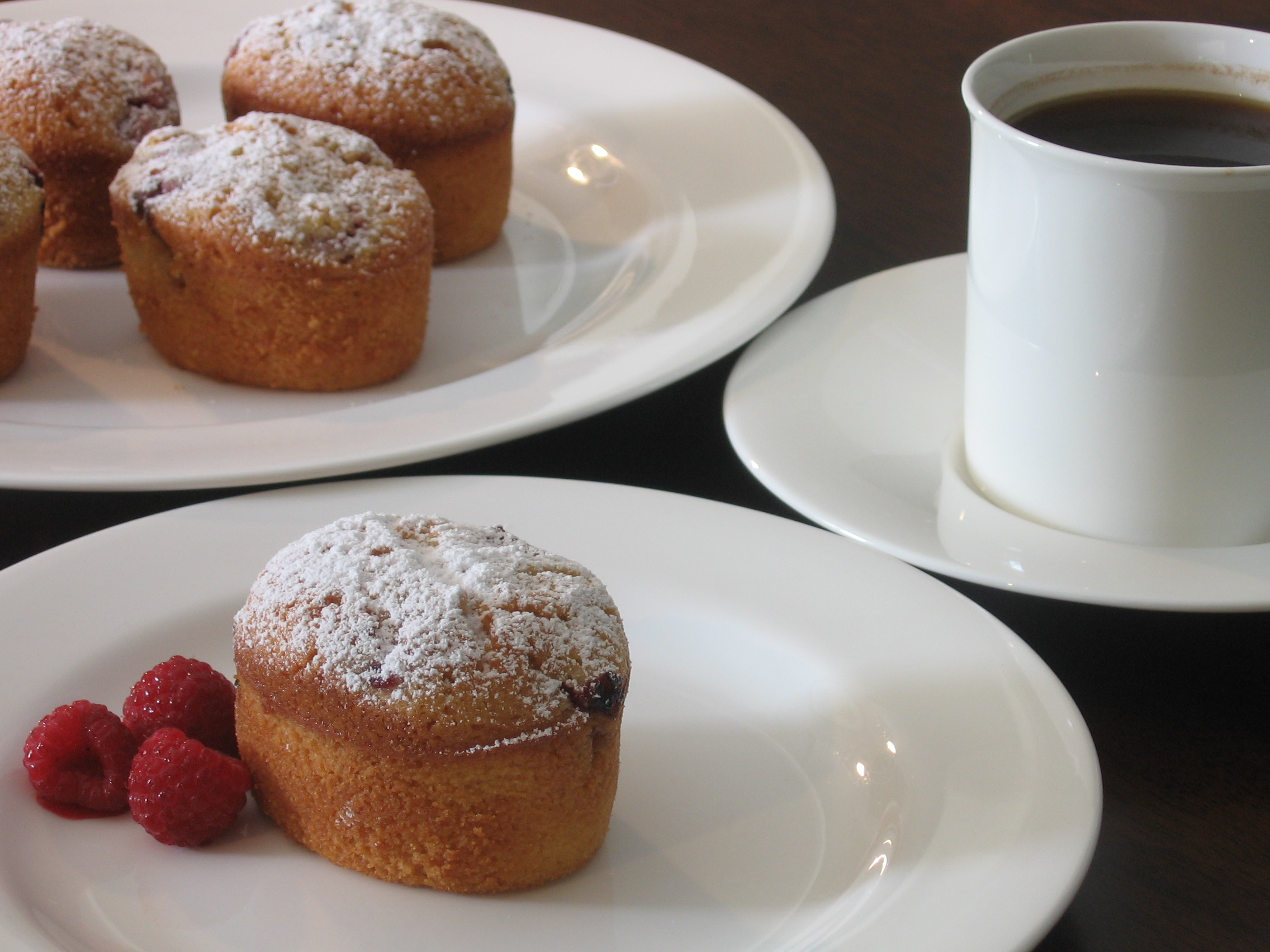 Friands are buttery, almondy and rich. Traditionally baked in a special oval shape, they have a completely different texture to other more traditional small cakes or muffins and are just a little bit glamorous. I first started making friands when one of my children was diagnosed with coeliac disease because they can also be made very successfully with gluten free flour. I make all sorts of friands but these are my favourites. Blueberries or blackberries can be substituted for the raspberries. They are best eaten warm with coffee or tea and in the company of good friends.