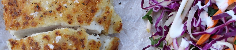 This recipe is my take on American southern fried chicken, where chicken pieces, usually on the bone, are marinated in buttermilk, coated with crumbs and deep fried. I’ve gone for a much lighter approach by pan frying in a little oil and butter, but used the buttermilk, along with whole-grain mustard, to marinate chicken breasts, and Japanese panko breadcrumbs as my coating. The result is almost unbelievably tender chicken, and the subtle aniseed-like fennel and sweet apple in the slaw are a food marriage made in heaven. I’ve come slowly towards fennel, as in my childhood, aniseed was a studiously avoided flavour. I was the child who peeled off the layers of licorice in licorice all-sorts and left them for my father to eat, while gobbling up the sweet candy layers. Ouzo is still a bridge too far, but a baby fennel bulb, sliced very thinly, is now a taste I adore. The dressing on the slaw is also very light and uses buttermilk and Greek yoghurt rather than mayonnaise, so no guilt is necessary. If you are making ahead, don’t add the dressing until just before serving. The purple cabbage will share its colour with the dressing and turn it a pinky-purple. Pretty, but it’s nice to see all the bright colours of the carrot and parsley as well as the deep purple cabbage. This makes a great meal for a Friday night dinner and movie.