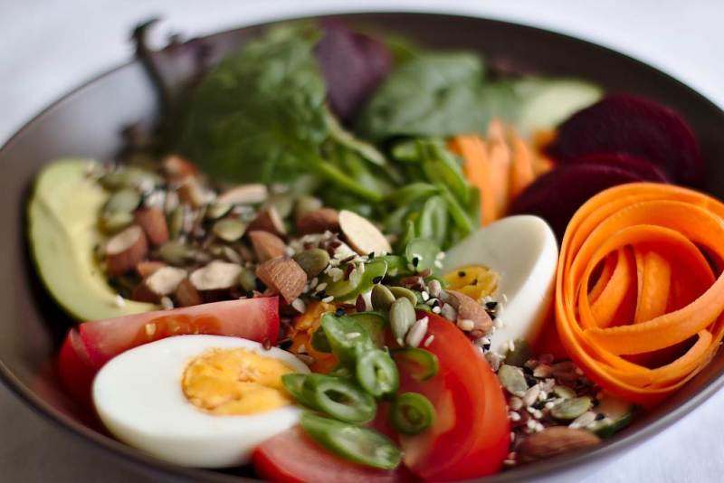 Rainbow salad with haloumi